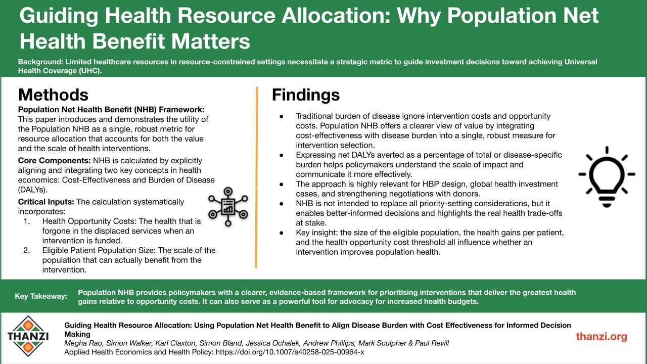 Limited healthcare resources necessitate a strategic approach to their allocation. This paper highlights the importance of population net health benefit (NHB) metric as a means of aligning two existing concepts used for resource prioritization in health: burden of disease and cost effectiveness. By explicitly incorporating health opportunity costs and eligible patient population size, NHB provides a clearer understanding of the likely scale of impact of interventions on population health. Moreover, when expressed in disability-adjusted life years (DALYs) averted, NHB enables policymakers to effectively communicate the population-level health gains from interventions relative to the existing disease burden. Using a stylized example, we demonstrate the estimation of population NHB for four alternative health interventions and its use in resource allocation decisions. The analysis reveals how variations in patient population size and health opportunity costs can significantly impact NHB estimates, ultimately influencing resource allocation decisions. The results further illustrate how NHB can be expressed as a proportion of the total disease burden, allowing for the consideration of the percentage of the overall burden addressed by each intervention. The paper demonstrates how population NHB combines cost effectiveness with components of disease burden, offering a more comprehensive approach to health intervention selection and implementation. As countries move towards universal health coverage, this metric can aid policymakers in making informed, evidence-based decisions.